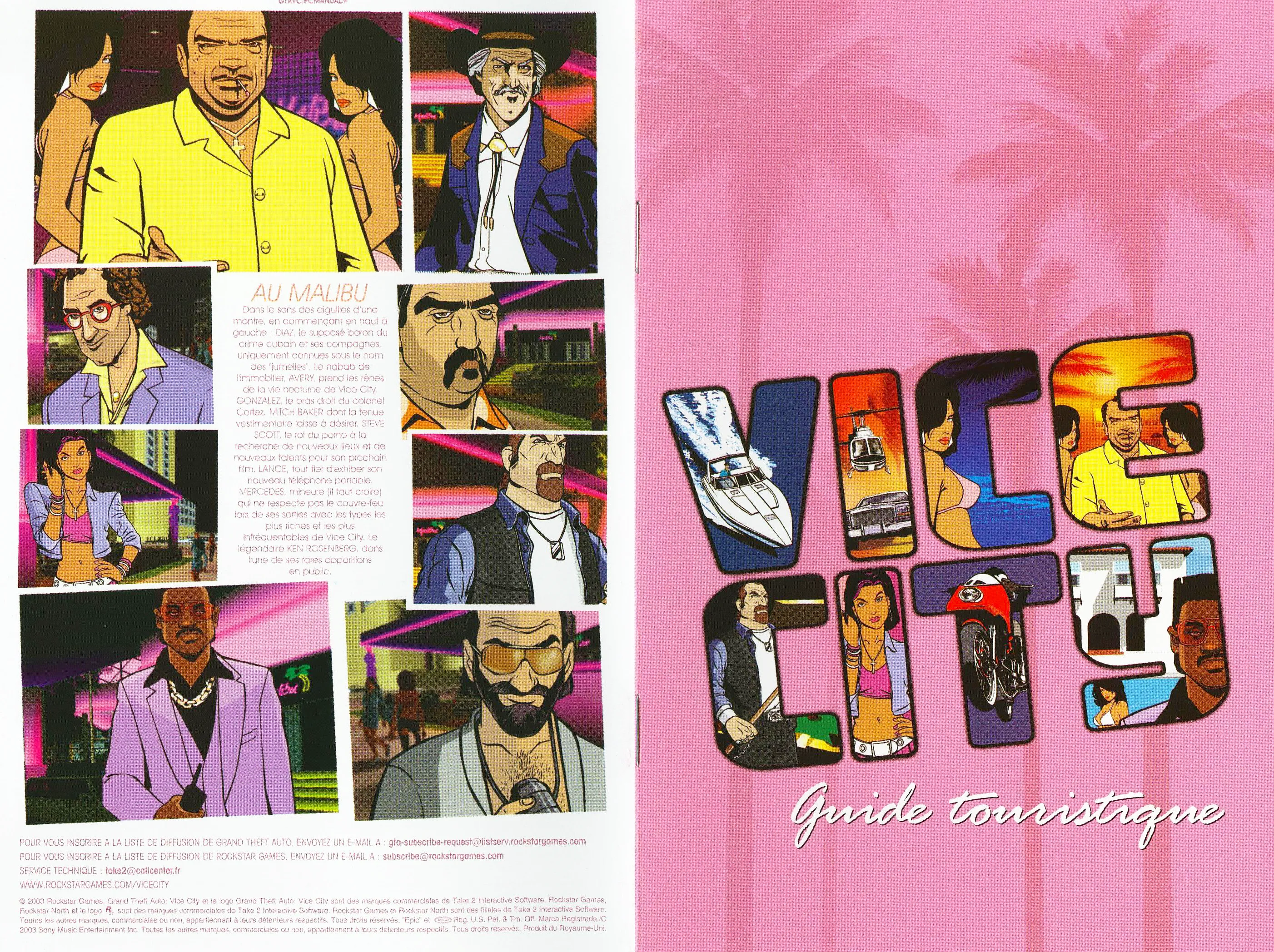Ces informations sont complétées par, en quatrième de couverture, un synopsis, des indications et une promesse de jouabilité et enfin des images tirées ou non du jeu vidéo. Une fois la jaquette ouverte, le support cartouche ou CD, du jeu vidéo présente lui une identité visuelle reprenant bien souvent celle de la couverture. S’y trouve généralement, un livret prenant la forme d’un manuel pour la prise en main des commandes du jeu. Celui-ci peut être très narratif comme c’est le cas pour Grand Theft Auto Vice City qui imite un guide touristique.